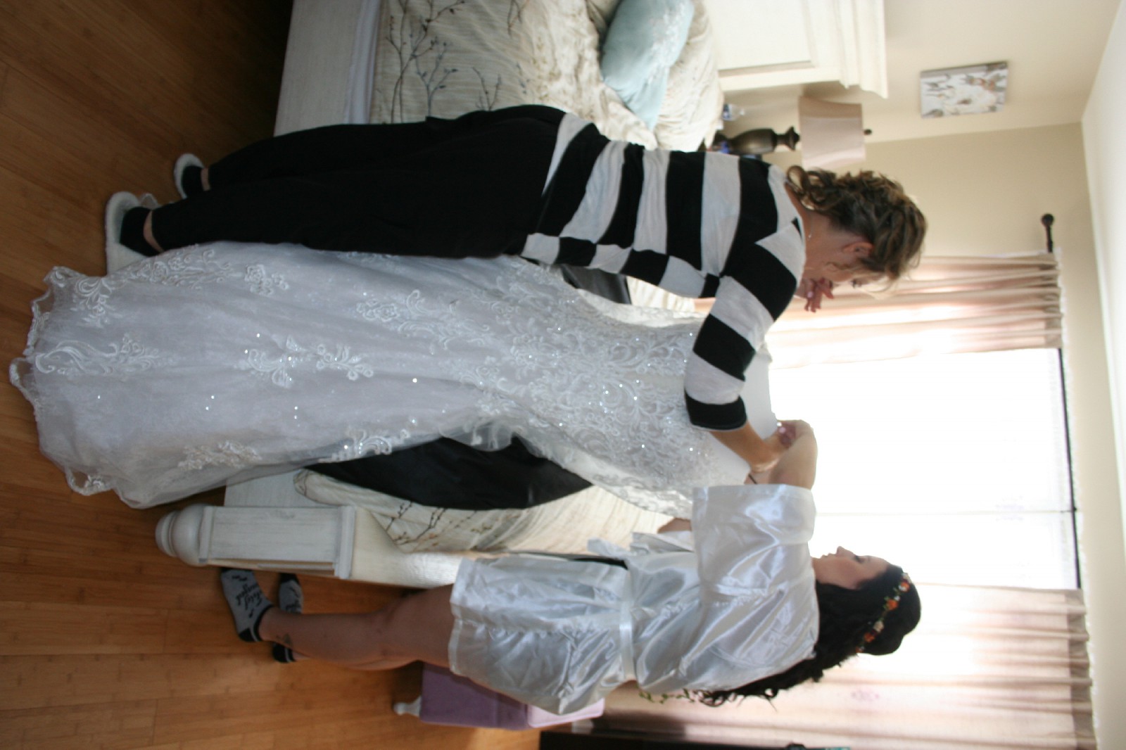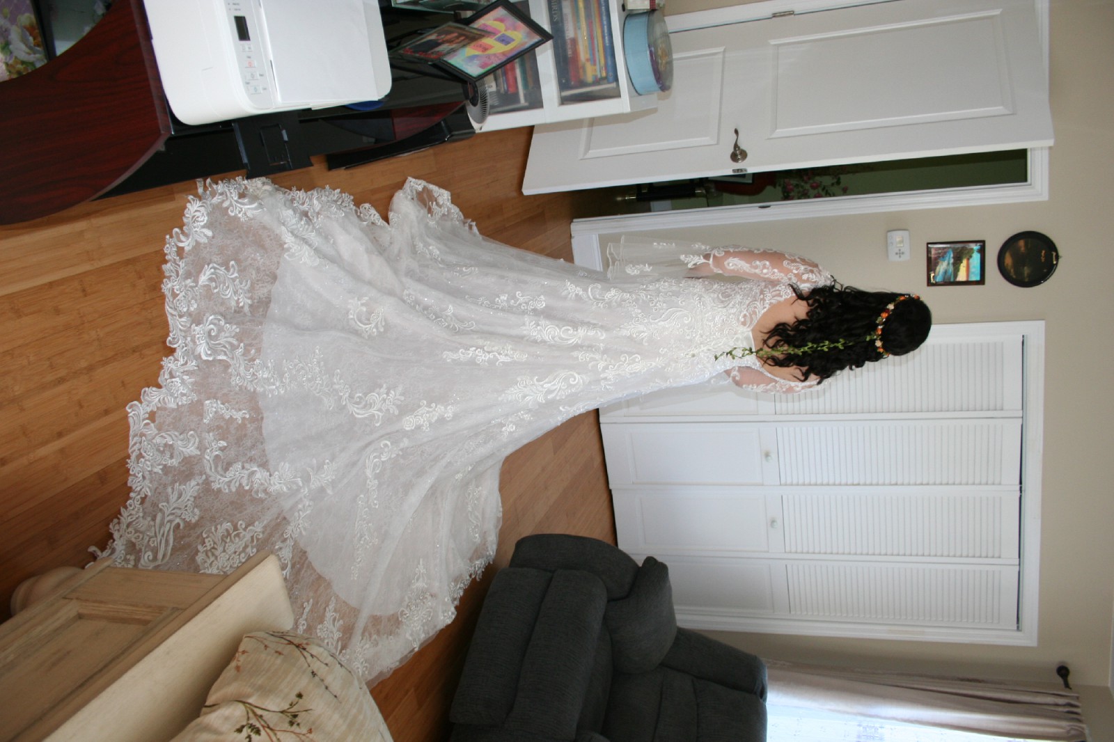 - Instead of the original zipper back, the dress has a corset back that can be adjusted + or - 1 size from 10
