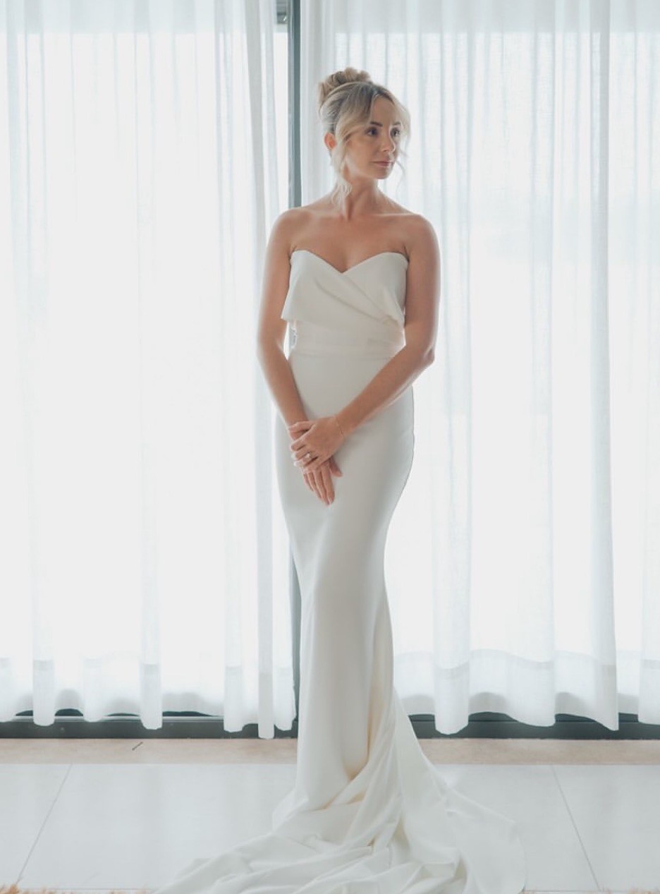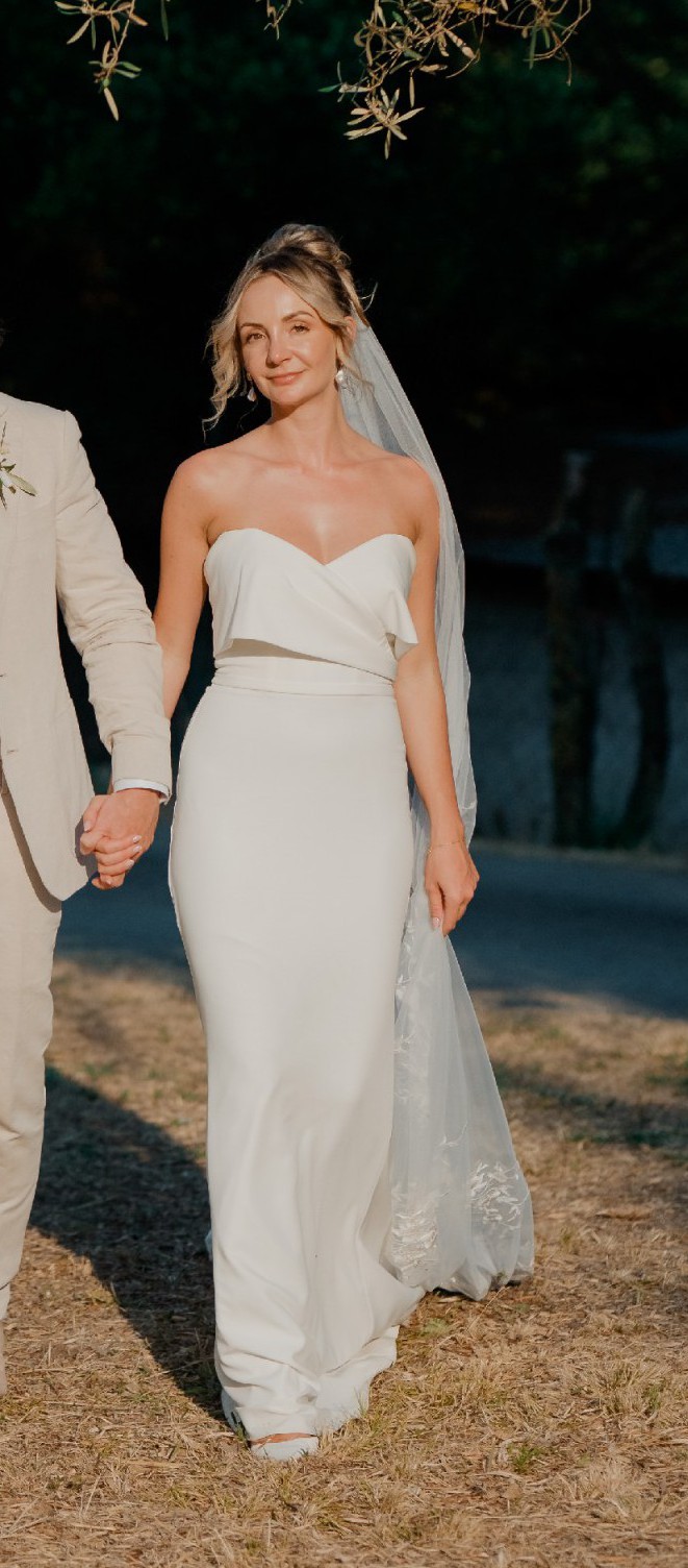 She was an absolute dream on my June 2025 wedding – elegant, comfortable, and timelessly classic. I felt amazing wearing her, and I’d love for another bride to feel just as special for a fraction of the cost.