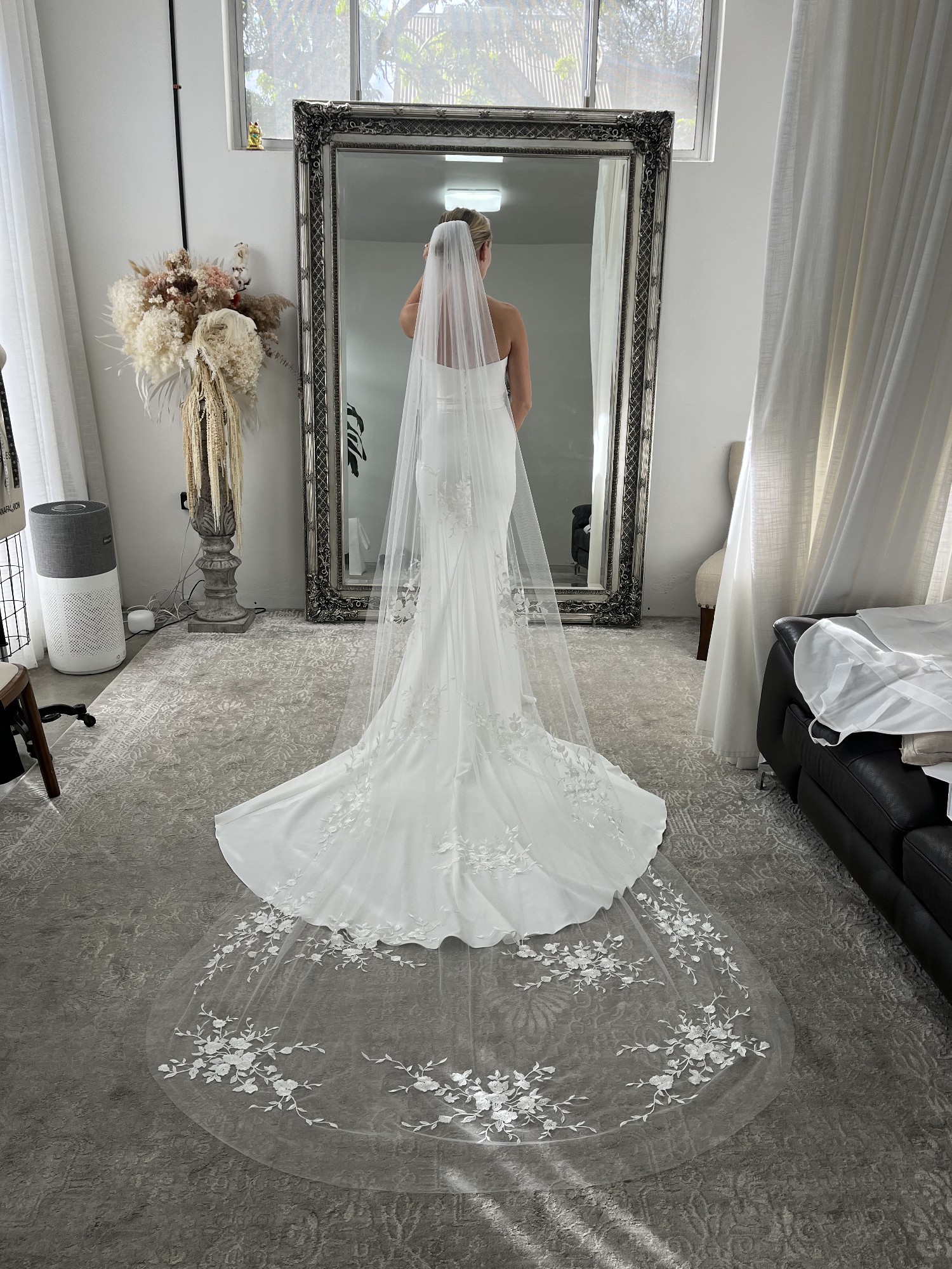 I paid over $4,000 in total for the dress, including $3,300 for the gown and $800 in professional alterations. I'm asking $1,800 (excluding shipping) with MWL ‘Jack’ Veil included.