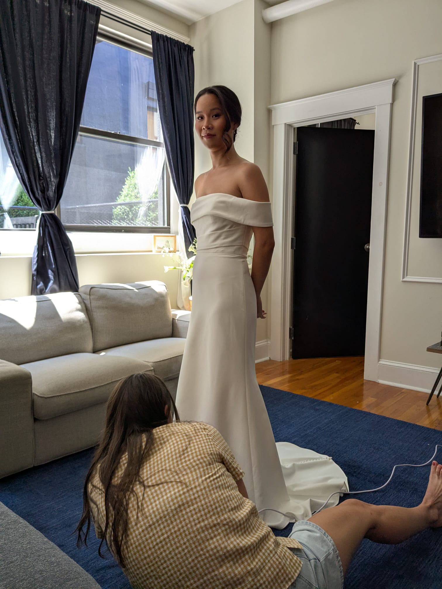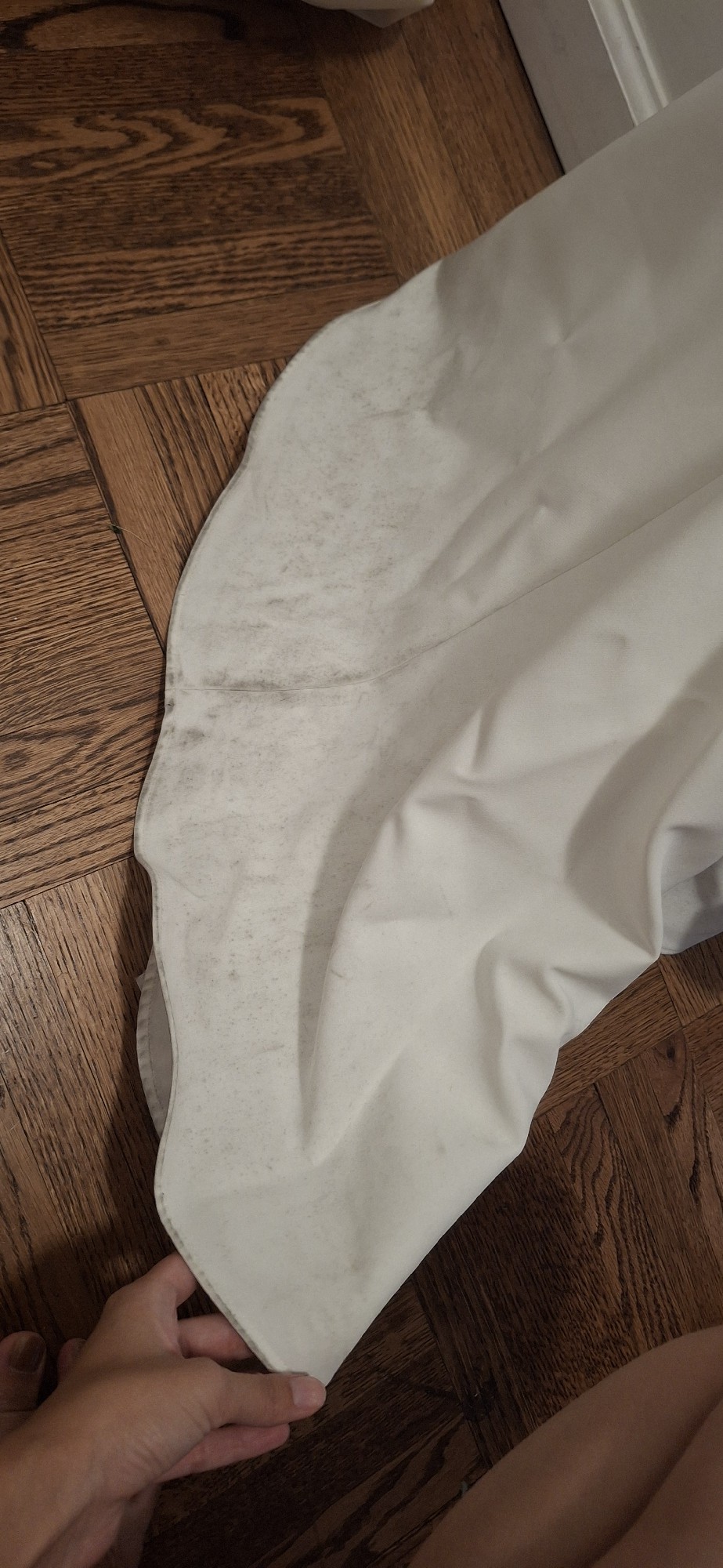 Hi-I wore this dress to my wedding on June 21, 2025. I did not get it dry-cleaned because I figured the new owner might want to make their own adjustments. The bottom of the dress definitely got dirty from taking photos on the sidewalk but if you cut off that section or get it cleaned it should be fine! Dress was very comfortable. Think it would make sense for someone shorter than me to have this.