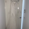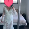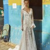 The Jackie gown by Calla Blanche reflects delicacy and elegance with its beautiful detailed lace. The ruffles on the neckline and sleeves add character to this design and brings it alive as it softly creates movement as you walk. Perfect for brides who are not opting for traditional styles but still want to make a statement and an everlasting effect on that special day. One of the best features in this gown is how lightweight and comfortable it is, while still highlighting your figure and giving you a beautiful silhouette. The open back and sheer fabric give this dress a lovely romantic flair.