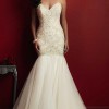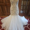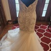 This stunning Allure Couture is featured in the popular Light Gold/Ivory/Silver. We incorporated light layers of tulle into this striking beaded gown for a delightful complementary texture. The heavily beaded bodice makes a statement as the bride walks down the aisle. The perfect chapel length train finishes the gown. The detail of this couture gown is not shown in the pictures. It is so beautiful that pictures don't do it justice, but your wedding pictures will glisten with all the beadwork that this gown has on it.