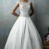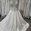What a gorgeous Allure Couture gown with beading that dances across the bodice and cap sleeves of this classic satin ballgown. A unique and timeless gown that you won't find many designed like. This gown is so comfortable for the bride with the small cap sleeve and stunning low back. The heavily beaded bodice is show stopping on the simple satin ballgown. A chapel length train finishes the gown.