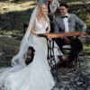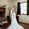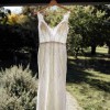 Absolutely beautiful dress. Really elegant and comfortable. Worn once and professionally cleaned and boxed ($450). Includes glitter veil (single tier) and diamante waist band.