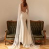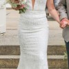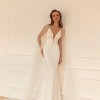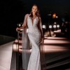 Eva Lendel describes 'Perla' as a fabulous and glamorous wedding dress that highlights the figure. This dress of mermaid silhouette is fully decorated with beads and artificial pearls. The deep V-shaped neckline accentuates the decollete and the thin shoulder straps follow to the uncovered back. The skirt is fitted on the hips and falls down to a full length. The shoulders are embellished with transparent wings that can be detached.