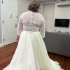 I purchased this dress shortly after getting engaged because I absolutely loved it online. While I still loved it when it arrived and felt beautiful in it, I hadn't tried on any other dresses yet. My fiance and I decided to have a longer engagement so when we finally started wedding planning, I went to try on dresses. I found one that I loved even more so my plan was to get both altered and wear both. Unfortunately, having both altered would put me way over budget so I'm selling the original dress. I've only tried it on a handful of times and there are no alterations made on it. It's brand new but at some point the tag came off so I don't have that unfortunately but it's in the original dress bag.