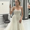 Absolutely stunning, glittering, show stopping wedding gown & overskirt! This combo really made it feel like I had two different dresses & the drama coming down the aisle was unforgettable.