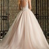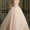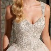 Tulle Ball Gown with Intricately Beaded Embroidery and Lace Bodice. This gown is featured in a gorgeous caramel/silver color.