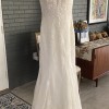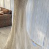 This dress is brand new and never wore aside from trying on at the bridal store. My wedding was canceled due to the pandemic and instead I decided to have back to back babies. This dress is absolutely stunning however since having children it would no longer be my size. The dress has been securely stored in its bridal garment bag fully zipped since purchased.