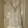 Brand new dress, never worn and purchased in 2018. Beautiful dress, but unfortunately I do not fit into it to use for my wedding next June. Dress is a stock size 10 with no alterations done. Comes with original tags and garment bag from Lotus Bridal. It is adorned with crystals throughout the bodice and can be bustled. Very flattering and secure for the wedding day. The back is a low back with crystals and mesh that clips together and has a cut out below. Dress is very comfortable as the skirt is not heavy. This is a true princess dress that is classy, but has a tasteful sex appeal to it! Price is negotiable and best offer received will be accepted!