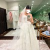 Flawless Lawrence dress and jacket, from Monique’s spring ‘24 collection. The dress color its called “silk white”, wich is like and off white. It comes with its paired jacket, which is de attachable from the dress, long sleeve, off soulders. The lace is delicate and very elegant, classic, feminine dress. The top comes in a sutil sweetheart form, and has a corset that looks very flattering. The gown is an A line. Cathedral veil with lace, same color as the dress, bought from Chic Parisien, brand Novus Paris. In perfect condition. Hope it makes someone as happy as it made me. *Includes dress, jacket and veil.