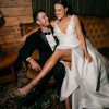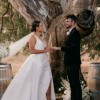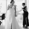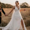 Structured plunging V neckline, made from our Luxe Mikado. The beautifully draped around the bust and waist. The Aline skirt features a split, pockets and a dramatic train.