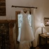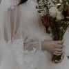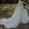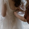 This is a beautiful Monique Lhuillier ballgown dress. The dress has embroidered flower details on the top of the dress and it flows nicely onto the skirt as well. The train is long and already has a bustle attached, but the bustle can easily be removed if desired. The ballgown skirt is large and well made with a silk slip on the inside so none of the tulle or crinoline scratches your skin. My favorite part of the dress are the sleeves. They are poofy, giving a kind of princess look and they have the same embroidered flowers and they clasp around the wrist with two pearls. I wore it for several hours and it was very comfortable!