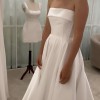 The Jessica gown is a modern take on the timeless A-line silhouette. Made from a luxurious mikado satin, this gown features a beautiful and elegant structured strapless bodice with exposed boning details and satin buttons along the back.