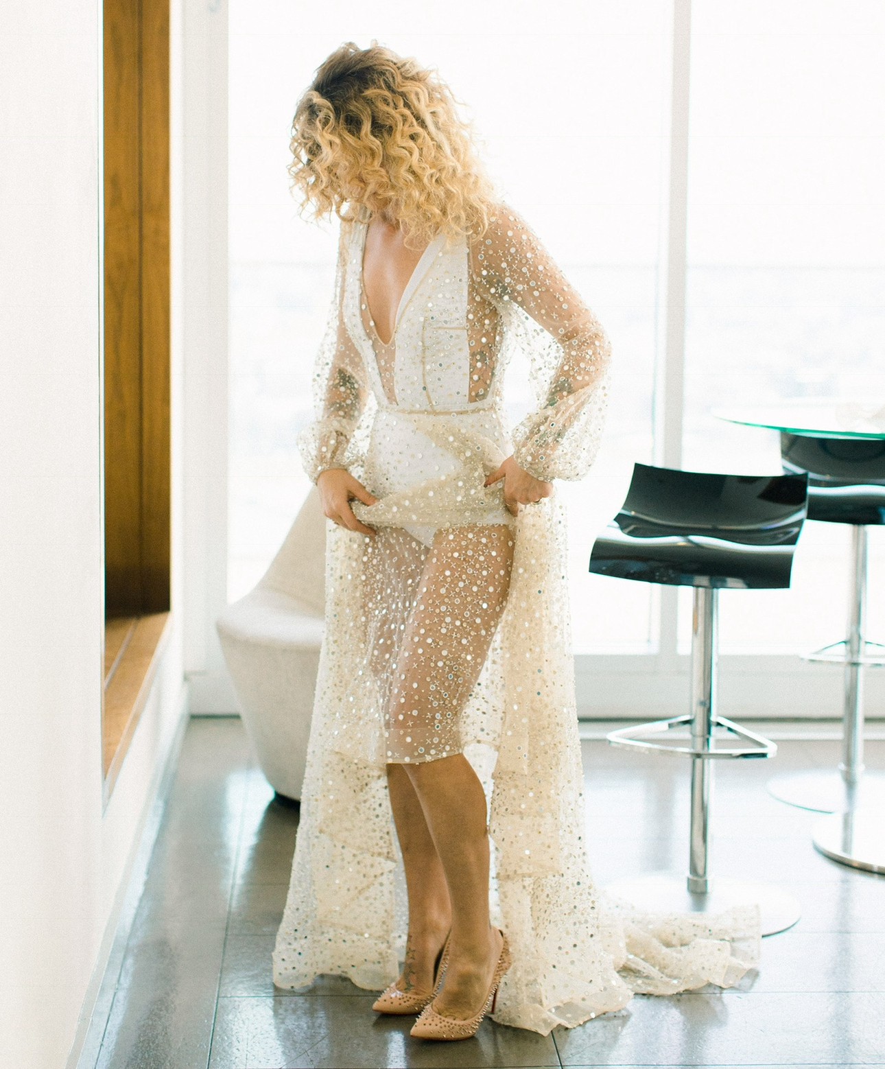 This Nala dress by Chosen By One Day is a breathtaking embodiment of elegance and romance that made my wedding day truly unforgettable. With its figure-hugging sheath silhouette, it accentuated my curves while allowing for effortless movement on the dance floor. The deep V-neckline beautifully frames the collarbone, lending a touch of sophistication, while the alluring backless design adds a hint of daring allure that left my guests in awe.