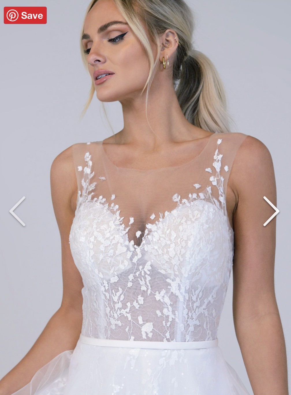 Isla is an A-line gown in soft tulle and lace with an illusion bodice and a lace illusion back. This is an ex-sample in great condition with no alterations.