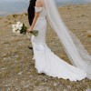 The dress has been worn once and has been dry cleaned with minimal marks on the train of the dress which are barely visible particularly with the veil over top (see photos) and the veil is in great condition.