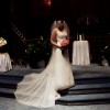 With spaghetti straps and a scoop neckline, it strikes the perfect balance between classic and contemporary, making it comfortable and chic for any wedding setting. The mid-back design adds a touch of sophistication, while the floor-length element with generous train ensures an ethereal feel as you walk down the aisle. The gorgeous long train fastens into a bustle for your reception.