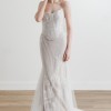 We are obsessed with this avant garde Ula gown! It is so versatile allowing you to create multiple looks with detachable straps and sleeves. Featuring a corset bodice that gives a faux two-piece look and layers of our New Beaded Haze Net with our New Cassie Motif perfectly placed throughout the bodice and skirt.