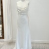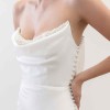 The Garance gown is simultaneously daring and effortlessly chic. This Polished satin sheath gown is draped to perfection with exposed corsetry and a touch of demure. The structured corset is completed with hand-beaded pearl details, detachable pearl straps are included with the dress for a 2 in one look.