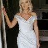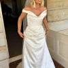 The Nova Cora takes inspiration from the seminal Vivienne Westwood archive Cocotte silhouette. Timeless, elegant, classic, the Nova Cora bridal gown from Vivienne Westwood is expertly crafted from lustrous satin. It is shaped with a gorgeous floor-length drape and train, a romantic, off-shoulder neckline, and sculpted, fitted bodice.
