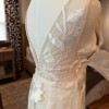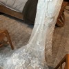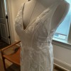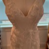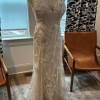 Gorgeous dress, alterations completed but didn’t end up wearing. I have extra fabric and extra lace I will send with it as well. Also includes dust bag. Bustle, cups have been added. Dress is size 8 in hips, has been altered in bust to size 4. Have added a fabric panel on front and embroidered flowers on sides to make more modest.
