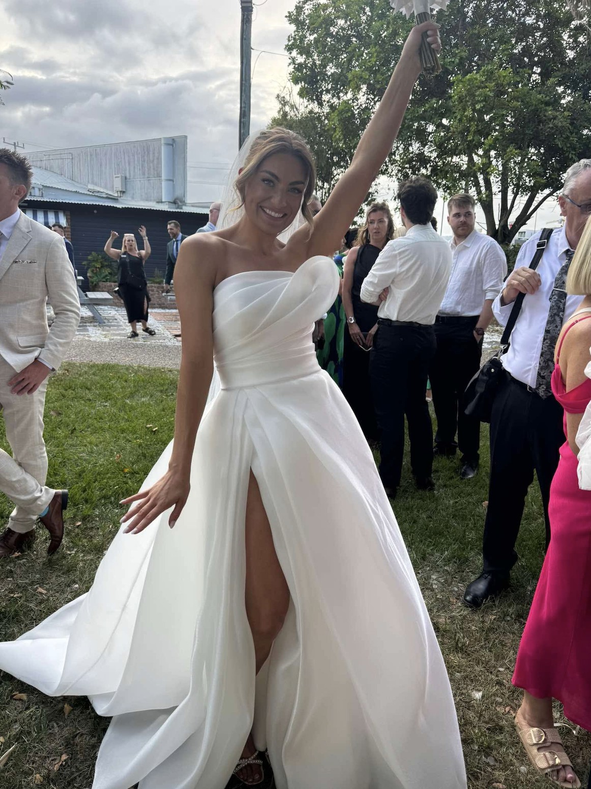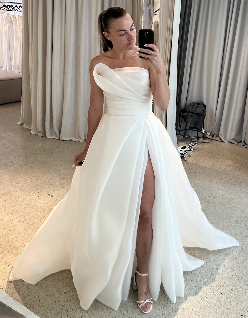 This gorgeous, Mariana Hardwick ISSY gown is custom made to my body with no side loop which is featured in the other ISSY dresses, also featuring a stunning leg slit.