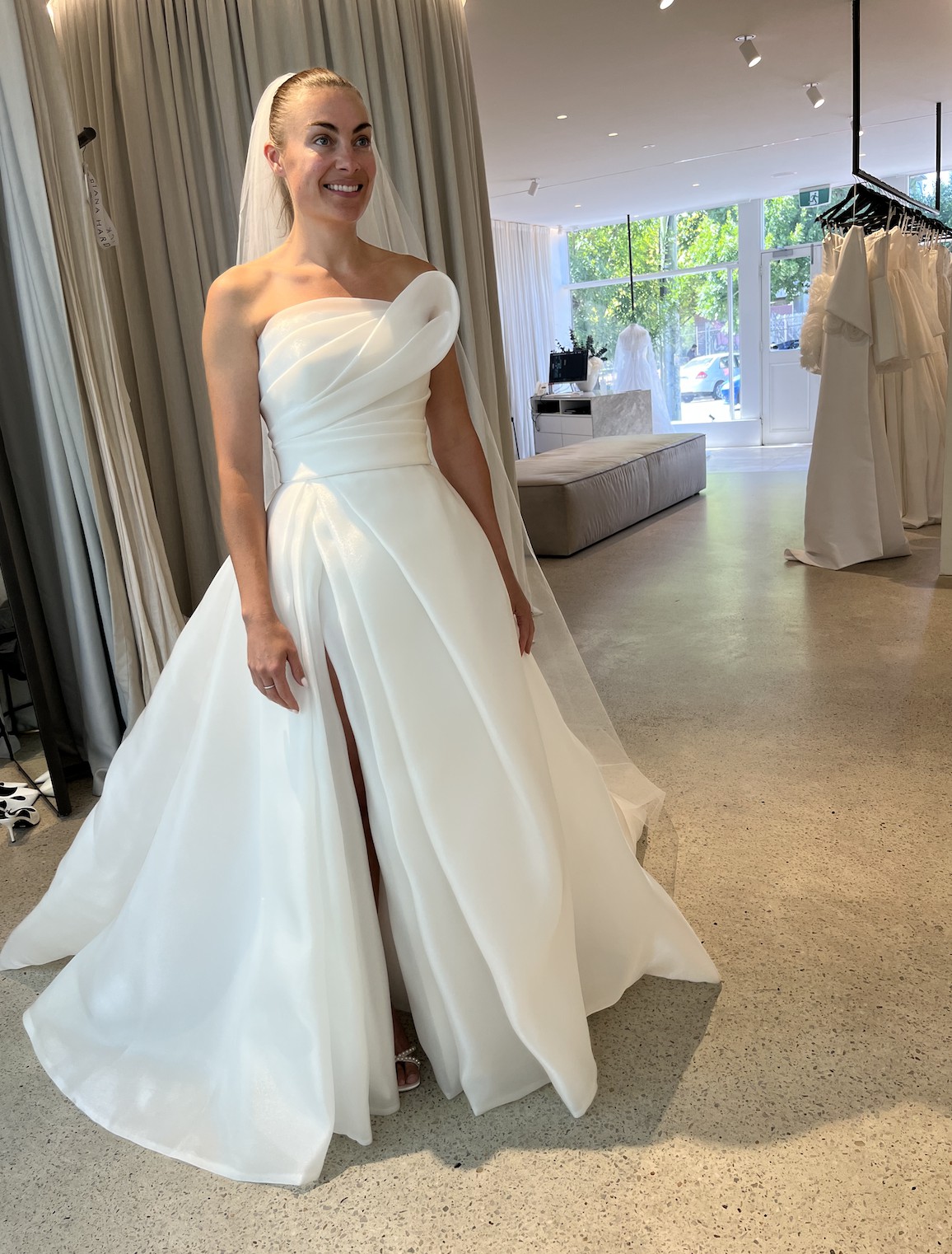 Worn once for only 4 hours as I had a dress change at the reception. Dry cleaned by Syndal’s Bridal Drycleaners straight after the wedding. Dress is in perfect condition.