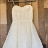 Gorgeous sparkly beading and sequins throughout, structured corset-style bodice with spaghetti straps.