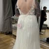 The delicate backless design adds a touch of allure, leaving a lasting impression as you walk down the aisle. Every detail of this dress is thoughtfully designed, featuring exquisite 3D flowers that cascade throughout the fabric, creating an ethereal look reminiscent of a blossoming garden. Subtle sequins catch the light, adding a hint of sparkle that effortlessly enhances the overall charm of this gown.
