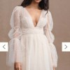Effortlessly transition from your ceremony to the reception with the convertible Willowby by Waters Matilda Wedding Gown. Fashioned of dreamy tulle, the silhouette features a deep v-neck, long tiered sleeves, and twinkling pearl embellishments. The long trailing skirt is easily removed, resulting in a chic mini dress for twirling on the dance floor.