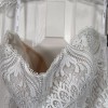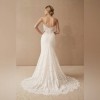 Delicate lace detailing adorns the bodice, seamlessly merging sophistication with charm. The intricate patterns draw the eye and highlight the bride’s natural beauty, while the gentle flow of the skirt adds a whimsical touch, ideal for twirling on the dance floor. This dress provides not only a refined aesthetic but also ample comfort, allowing for ease of movement throughout the day.