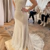 BRAND NEW - never worn. Never altered. Intricate details and a romantic style that is elegant and sexy at the same time. The pearl detail along the top of bodice is stunning (and why I decided to buy it). I love this dress - I just never got the chance to wear it down the aisle. I would love to see it go to a good home and make a bride feel beautiful on her big day. Please txt with any questions or measurement needs. 4 oh six, 6 nine seven, too 99 six
