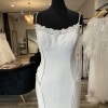 This Bylot wedding dress from Pronovias is a breathtaking embodiment of elegance and modern romance. The exquisite mermaid silhouette hugs the body in all the right places, seamlessly highlighting your figure while offering a sophisticated flair. The low back adds an alluring touch, perfectly balancing the femininity of the curve neckline.