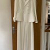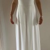 this jumpsuit has never been worn or altered, it is of new condition with no marks. it comes with a beautiful jacket with buttons on the sleeves. it is ivory colour with a simple embroidery around the waist, it is then floor length. since purchase it has been kept in the original bag.