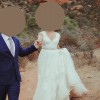 I wore this dress for my wedding in Sedona in June 2021 and it was such a gorgeous bright white dress that made me feel beautiful and flattered my shape. It was professionally cleaned and since then kept safely in a dark closet to ensure color maintenance.