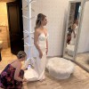 The strapless design not only showcases my shoulders but also allows for unrestricted movement, making it a comfortable choice for dancing the night away. The mid-back detail offers a hint of spice, perfectly balancing the classic elements of the dress. The floor-length cut created a dreamy illusion as I glided through the celebration, transforming each moment into a fairy tale.