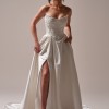 Zipper closure with inner shapewear corset and covered buttons trailing to the hem