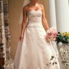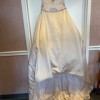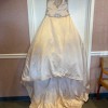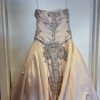 Exquisite Monique Lhuillier ballgown in a stunning champagne hue. It has a timeless straight neckline and elegant strapless design.