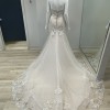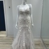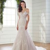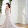 This silver embroidered wedding dress from Essense of Australia is the perfect mix of romantic and sexy. The sheer bodice of the gown is highlighted with a sweetheart neckline.