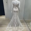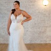 SEXY LACE FIT-AND-FLARE WEDDING DRESS WITH PLUNGING NECKLINE.