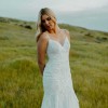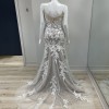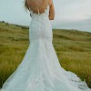 Lace and tulle fit and flare wedding gown with spaghetti straps and low back.