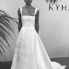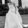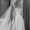 Master the art of minimalist opulence c/o Wharton. Wharton combines a structured, straight neckline bodice with swathes of luminous duchess satin in a full skirt. Add pleated straps and a low back, and you’ve become a maestro in effortless maximalism.