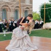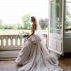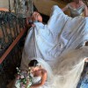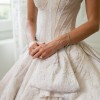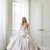 Gorgeous Ines di Santo wedding gown from her jewel box collection. Only one of these gowns was ever purchased / made and it’s this one. Stunning blush color jacquard fabric with delicate flowers painted on the skirt. Detachable crinoline keeps the skirt full for the ceremony but is removable for the reception. The dress without the crinoline is light and comfortable and able to be danced in all night. First photo shows gown with crinoline removed. The rest show the crinoline/hoop skirt still attached. Originally purchased at the iconic Mark Ingram Atelier in New York City. Price is firm as the gown at the gown and veil together was $17,000. Fantastic deal for a breathtaking work-of-art gown.