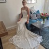 Beautiful dress, both structured and gorgeous flowing skirt. Well loved for recent wedding, hem showing signs of wear hence the reduced price. Dress is in clean but not pristine condition, hence reduced price. Can share full measurements on request. Floor length ivory veil available also.