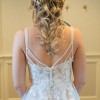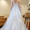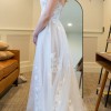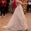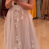 Ivory Dress with a light Mocha undertone, Tuelle dress with large flower laced throughout, The bodice is sheer, the flowering throughout offers modest coverage and there are modesty panels on the side cutouts. The straps are hand beaded and one of a kind, the dress was worn lightly and cleaned immediately after use.