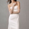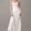 The Jenny by Jenny Yoo Ronnie Fitted Stretch Satin Wedding Gown exudes modern elegance with its sleek silhouette and luxurious stretch satin fabric, while its seamed detailing adds a flattering touch, making it a stunning choice for the contemporary bride.