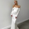 A draped, scooped neck corset meets a draped, fit and flare skirt. Crafted from sleek satin triacetate, Salacea is a study in the contrast between structure and fluidity.
