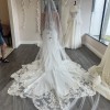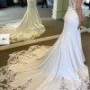 The dress is a size 8 but had several inches taken in so now it is a size 6. The dress also had a sheer middle v in the center however I removed this during alterations.