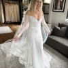 This dress features beautiful lace detailing, a flattering neckline and Chantilly lace off-the-shoulder long sleeves.